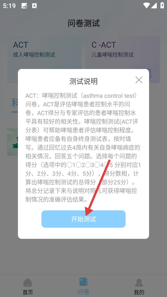 3、在弹出的测试说明弹窗中,阅读说明后点击【开始测试】。