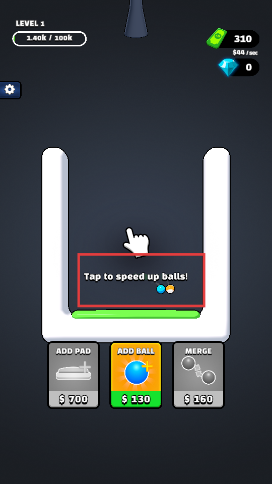 3、根据提示【Tap-to-speed-up-balls!】,点击屏幕,加快小球的速度,提升游戏效率。