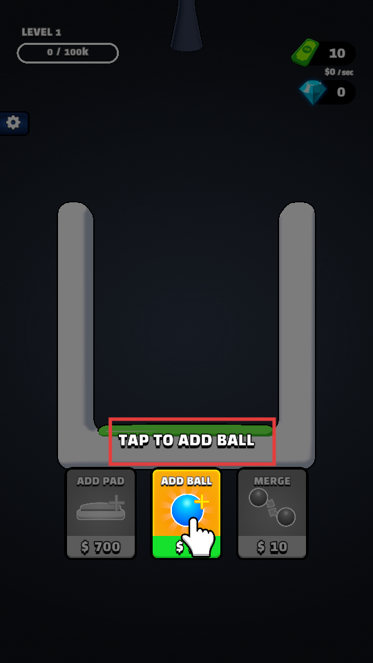1、按照提示【TAP-TO-ADD-BALL】,点击屏幕,添加小球,开启游戏进程。