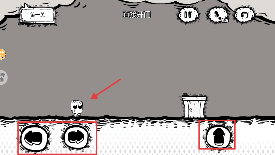 4、操控小木棍人走到门的位置,门自动开启,小木棍人进入门内,成功通关第一关“直接开门”。