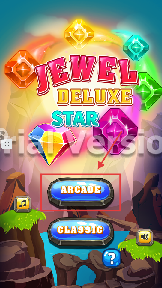 1、点击【ARCADE】按钮,进入街机模式,开启宝石消除的关卡挑战。