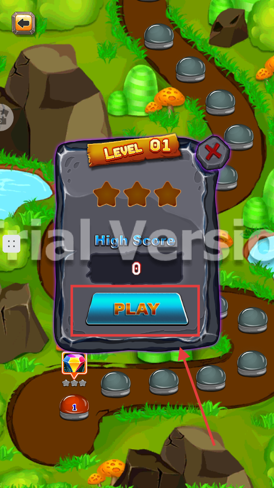 2、点击【PLAY】按钮,开始【LEVEL-01】的游戏,正式进入宝石消除关卡。