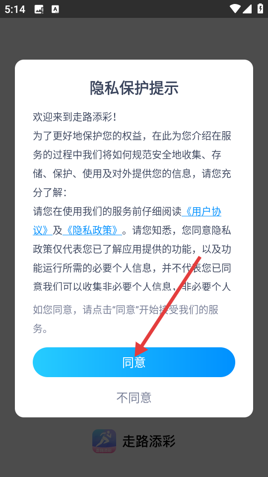 1、打开APP,在隐私保护提示弹窗中点击【同意】。
