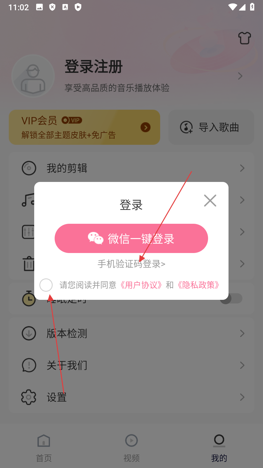 3、在登录方式选择弹窗中,点击【手机验证码登录】,并勾选【同意协议】。