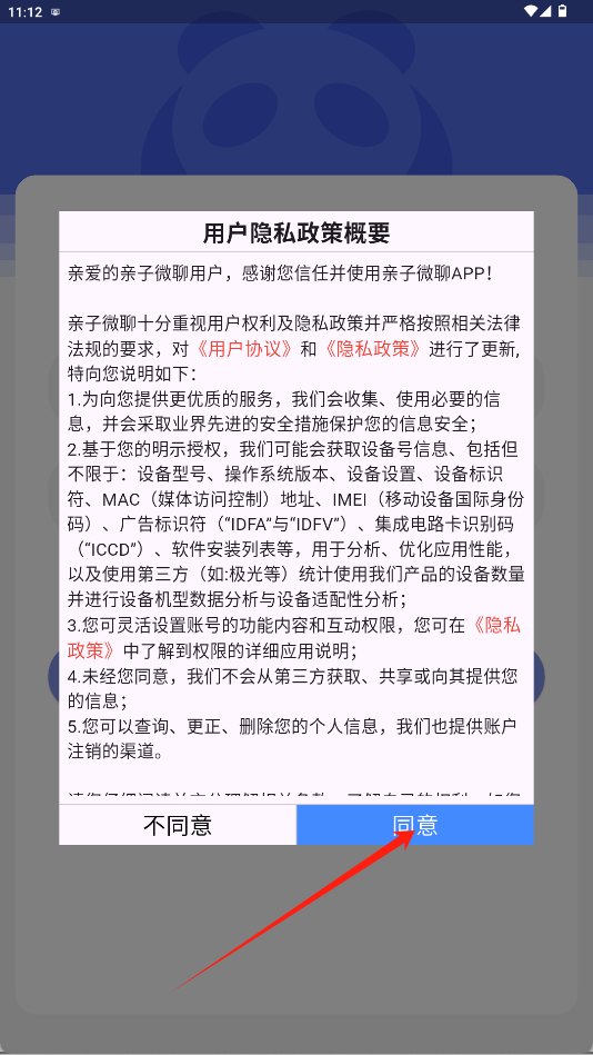 1、在首次打开的隐私政策弹窗界面,点击指向的蓝色“同意”按钮完成授权。