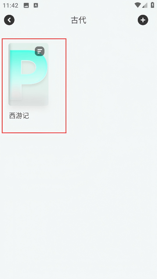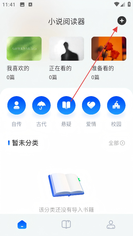 1、在“小说阅读器”页面,点击右上角的【+】号。