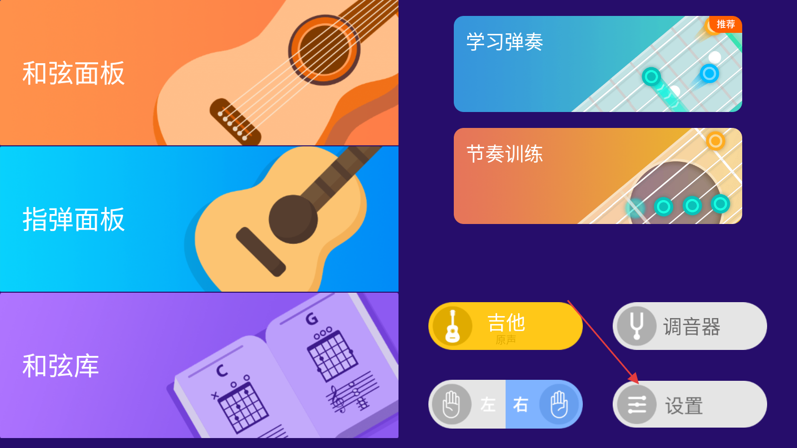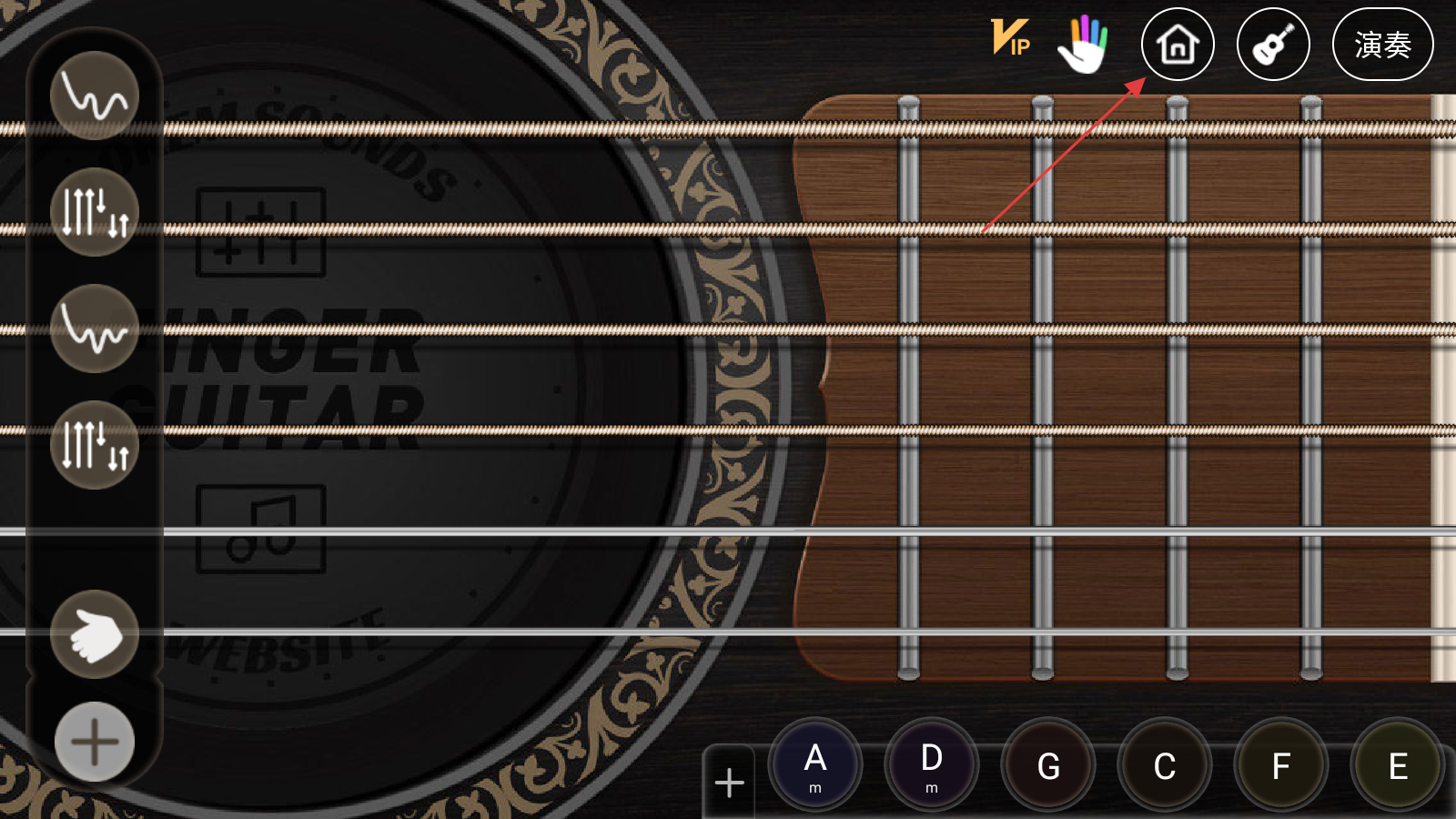 1、在吉他模拟界面,点击【右上角的主页图标】,进入主页面。