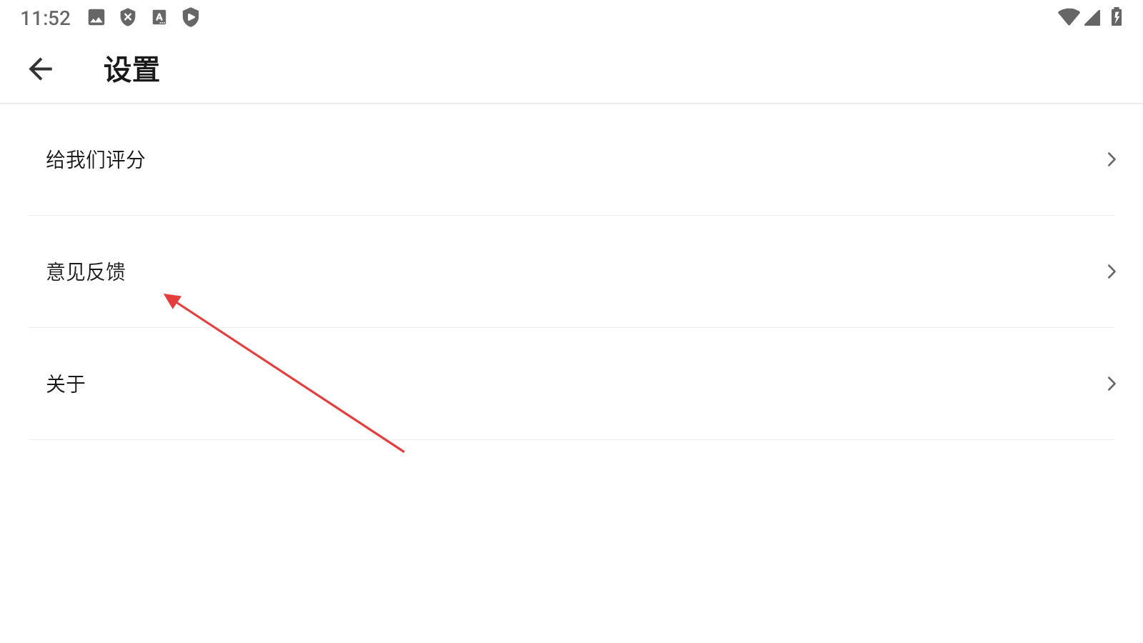 3、在设置页面,点击【意见反馈】,进入意见反馈页面。