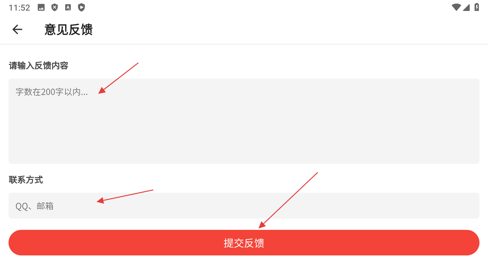 4、在意见反馈页面,输入【反馈内容和联系方式】后,点击【提交反馈】,即可完成意见反馈的提交。