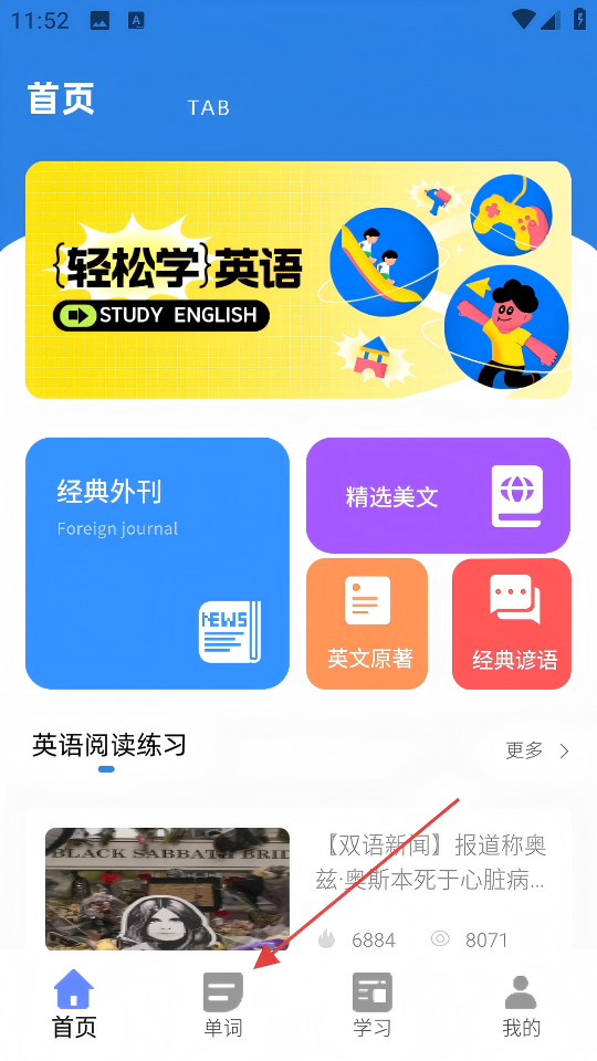 1、点击首页底部【单词】选项,进入单词学习相关页面。