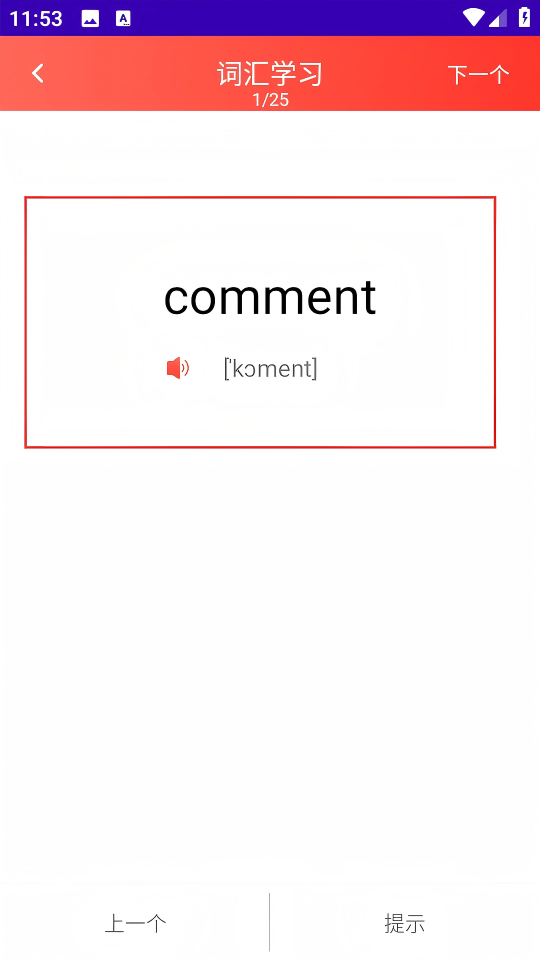 4、进入词汇学习后,可学习单词,还能点击发音按钮听读音。