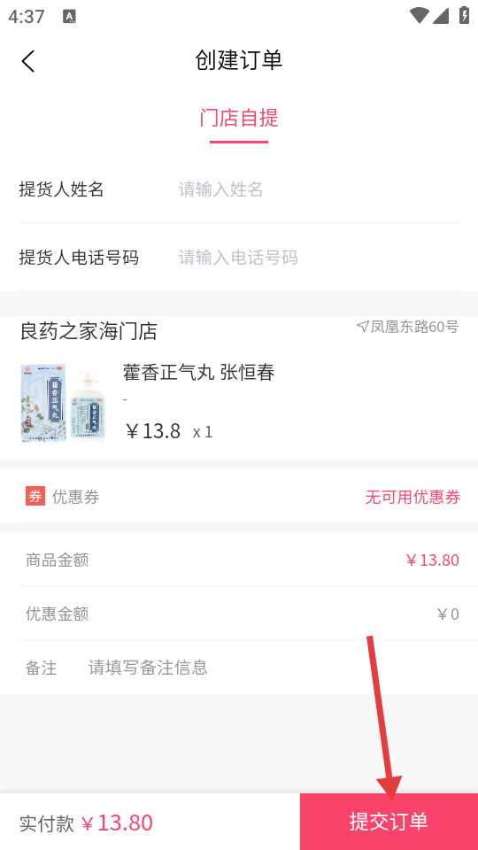 4、进入创建订单页面,选择提货方式,填写信息后,点击【提交订单】完成购买。