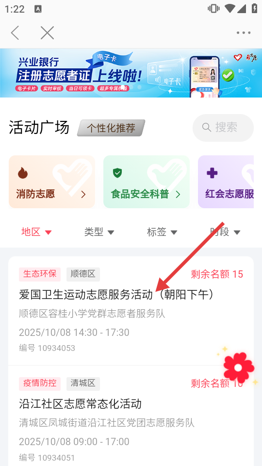 4、在活动广场,挑选目标志愿活动,可查看或参与该活动。