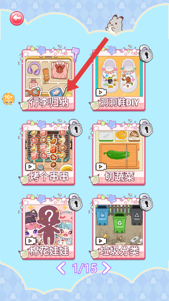 1、在游戏关卡选择界面,点击【行李归纳】选项,进入行李整理关卡。
