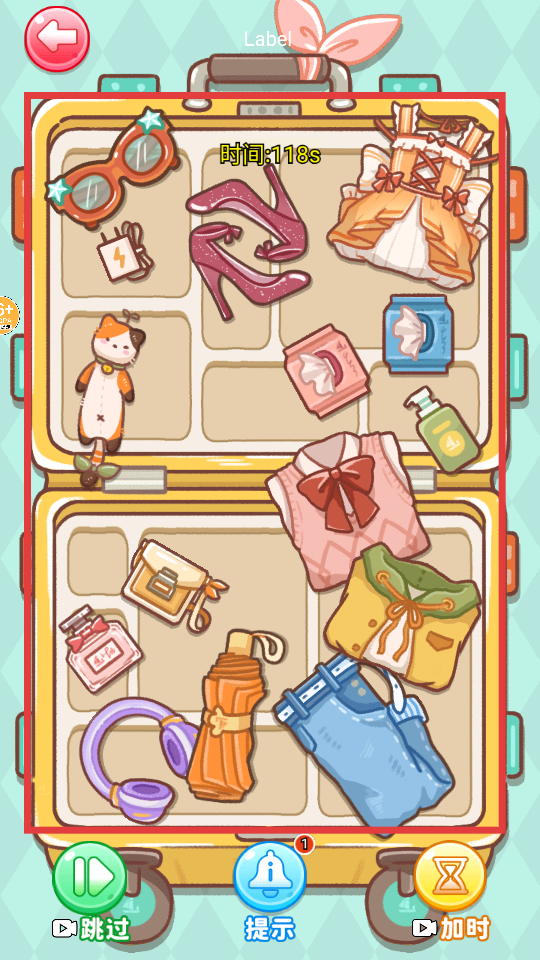2、进入关卡后,面对散落的【衣物】【配饰】【生活用品】等物件,在【118s】的时间限制内开始整理。