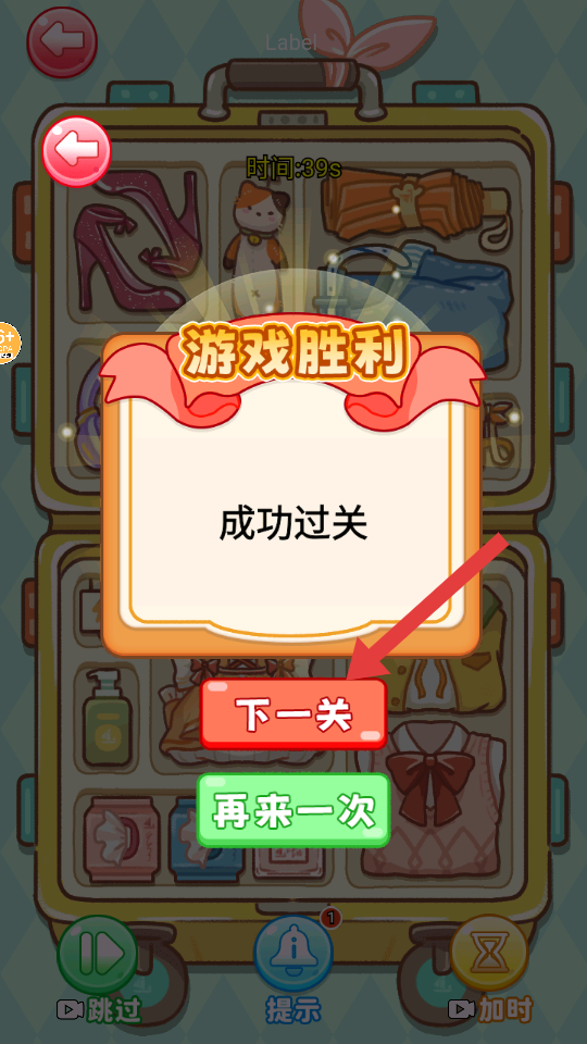 4、成功通关后,点击【下一关】按钮,挑战后续关卡。