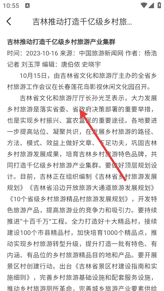4、进入后,可查看该资讯的详细内容,了解吉林乡村旅游产业发展相关信息。
