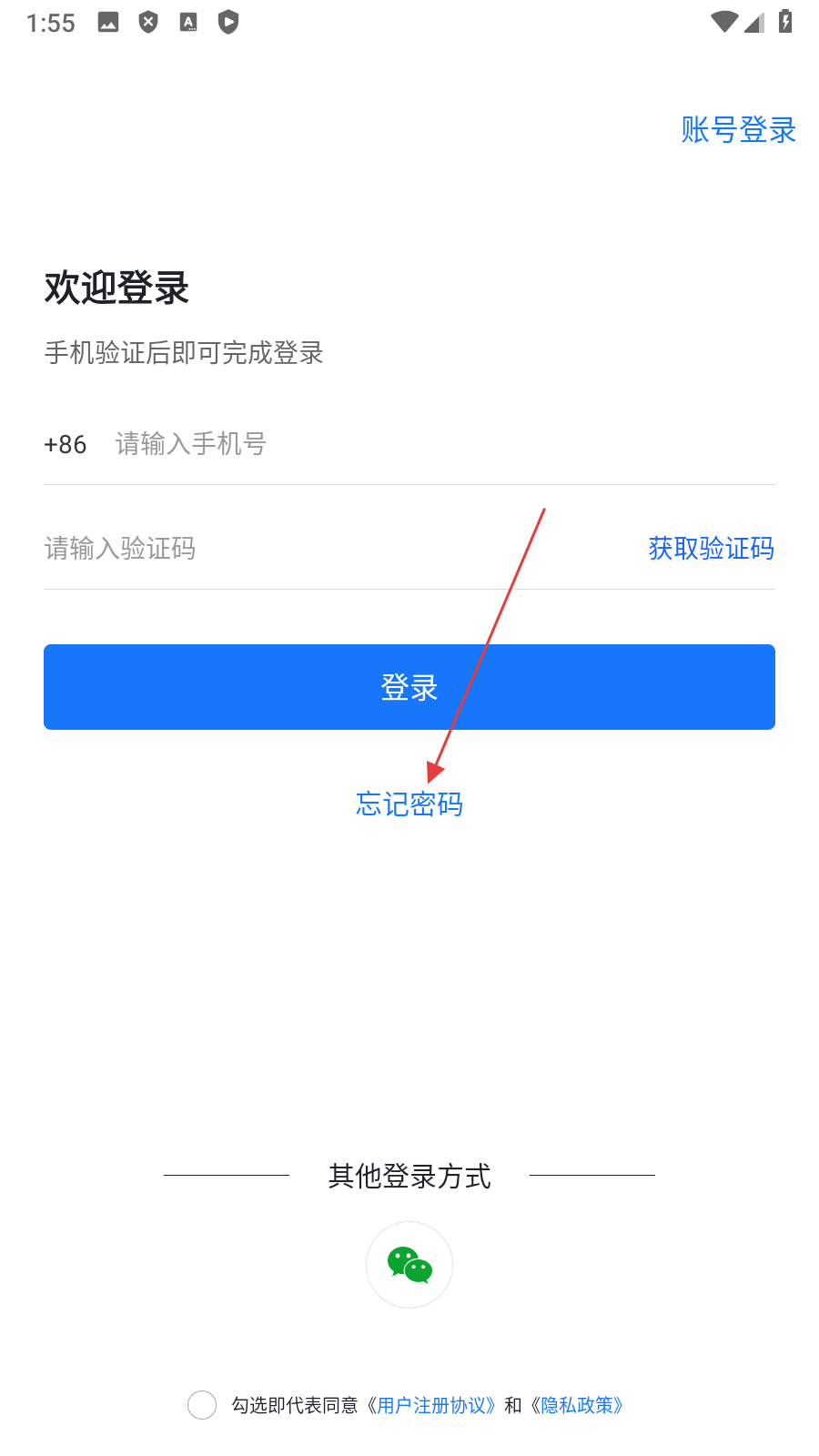 2、在登录页面,点击【忘记密码】,进入账号验证页面。