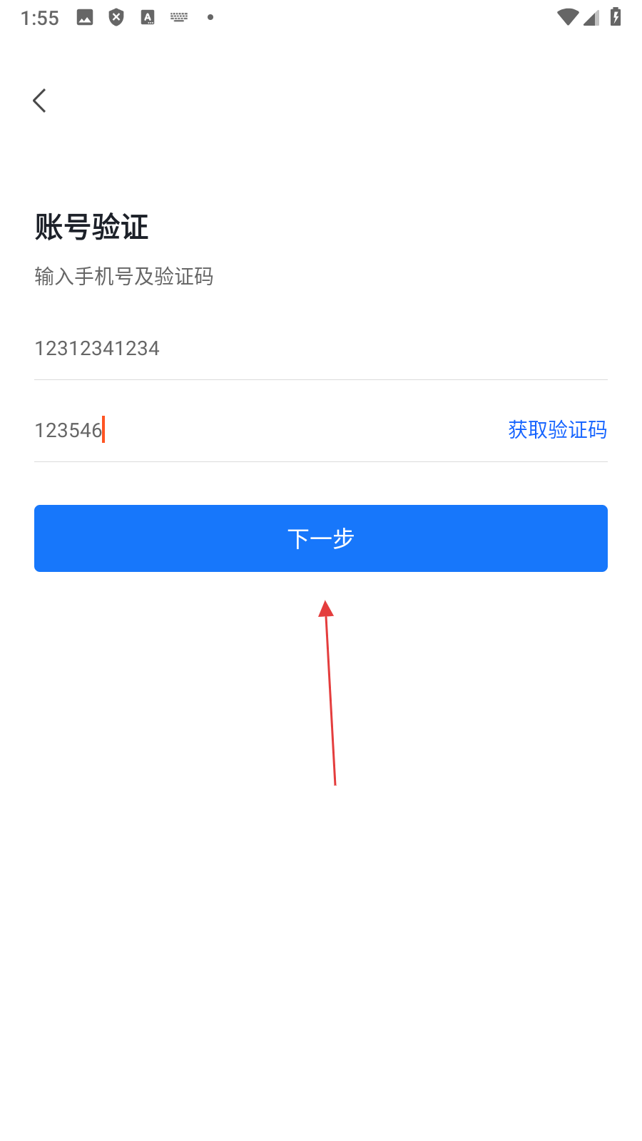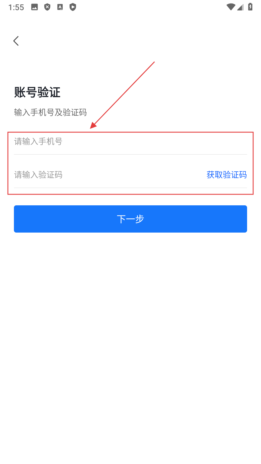 3、在账号验证页面,输入【手机号和获取的验证码】。