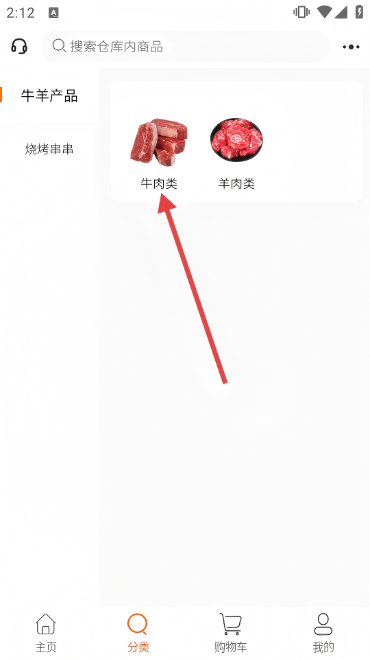 2、在商品分类页,选择【牛羊肉产品】中的【牛肉类】,进入牛肉类商品列表。