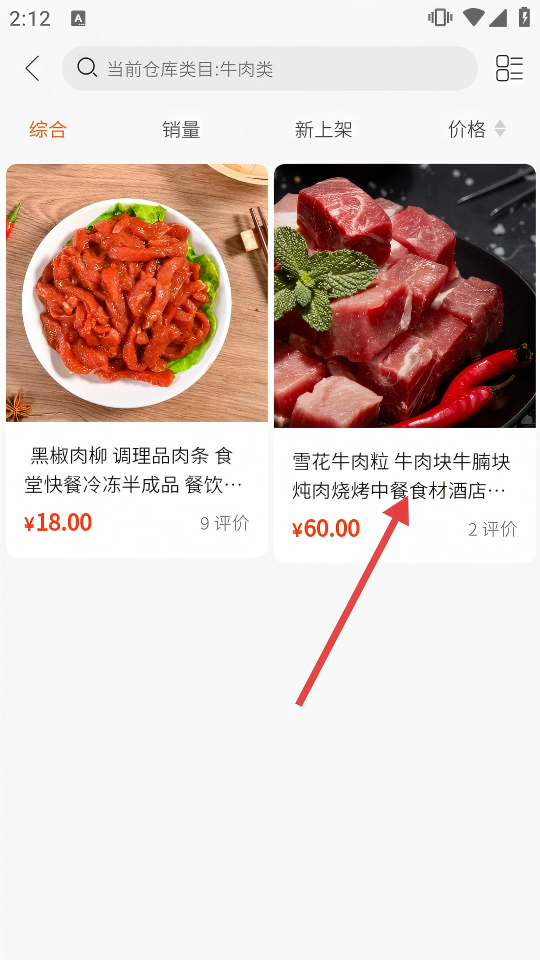 3、在牛肉类商品列表里,挑选目标商品,点击进入商品详情页。
