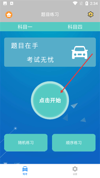 2、进入题目练习页面后,点击【点击开始】按钮,开始练习。