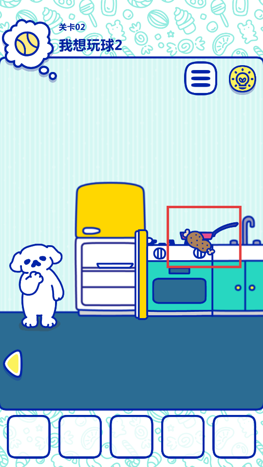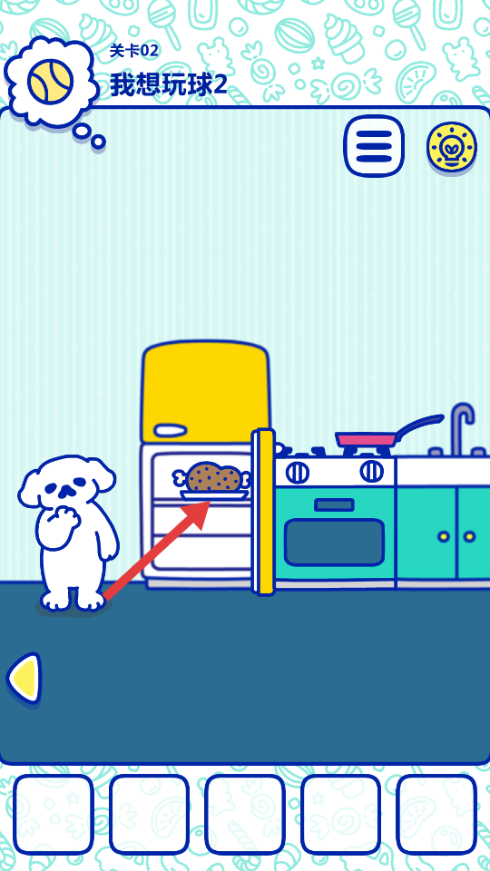 3、将食物放在在锅具上吸引棕色小狗,朝着获取球的目标前进。