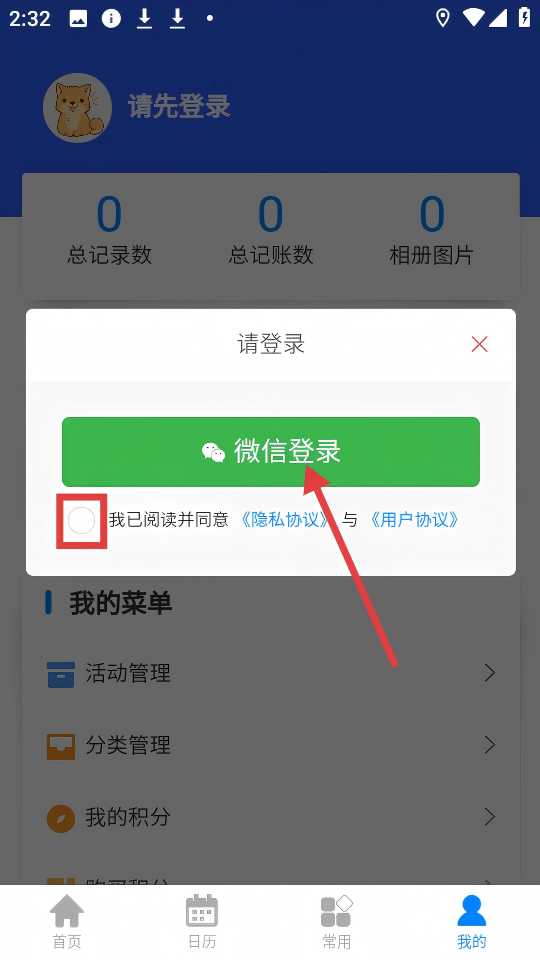 4、在登录弹窗中,勾选【我已阅读并同意《隐私协议》与《用户协议》】,点击【微信登录】。