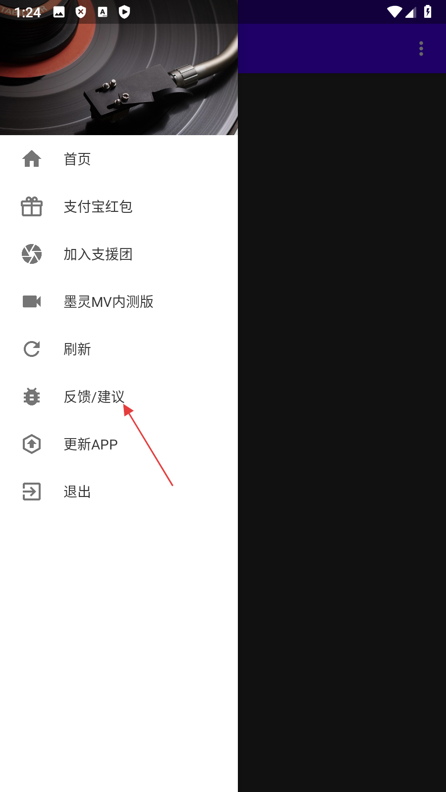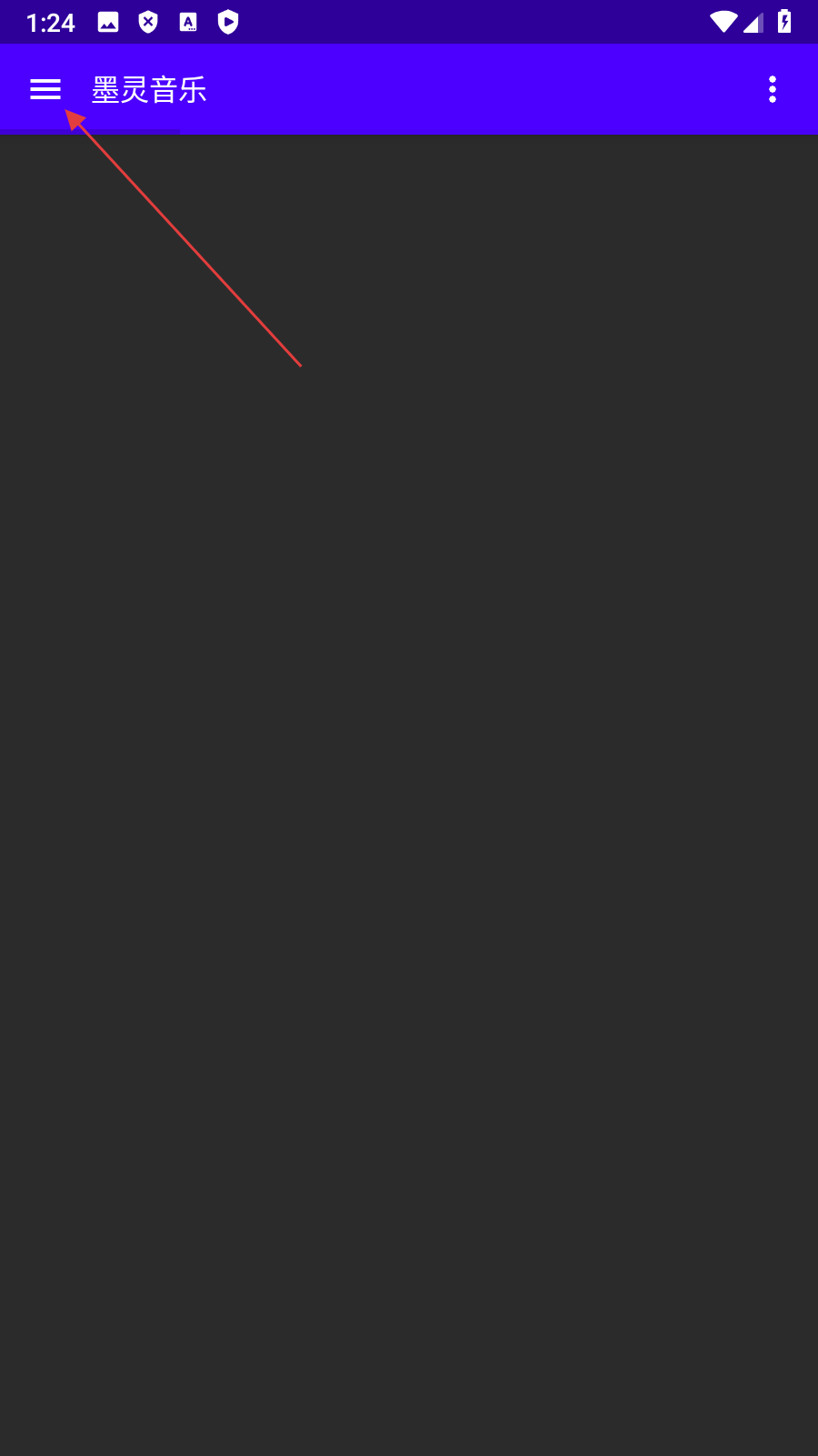 1、在墨灵音乐界面,点击左上角的【三条横线菜单按钮】,展开功能侧边栏。