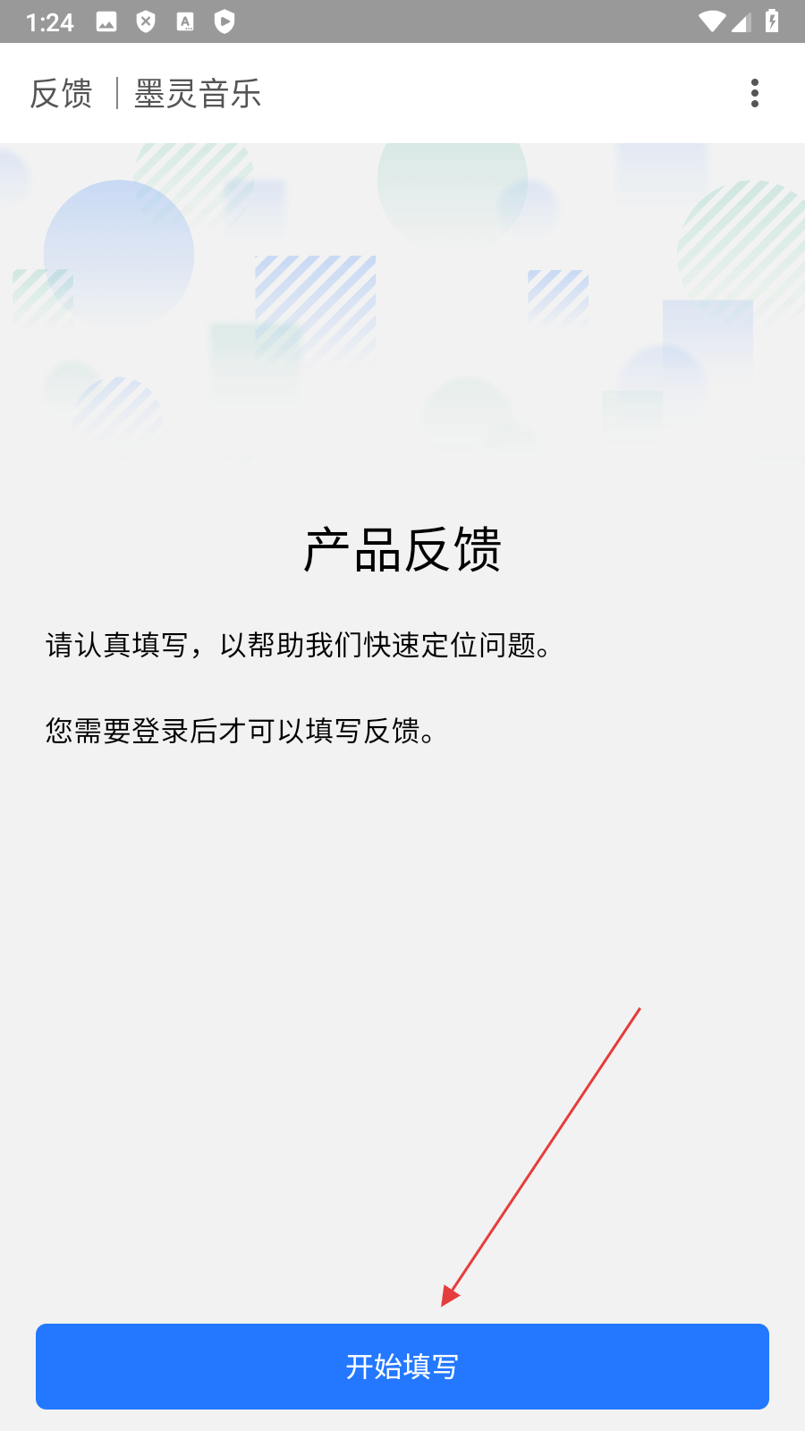 3、在产品反馈页面,点击【开始填写】,进入反馈内容填写界面。