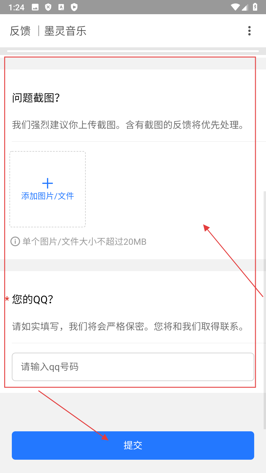 4、在反馈内容填写界面,填写【信息】后,点击【提交】,即可完成反馈提交。