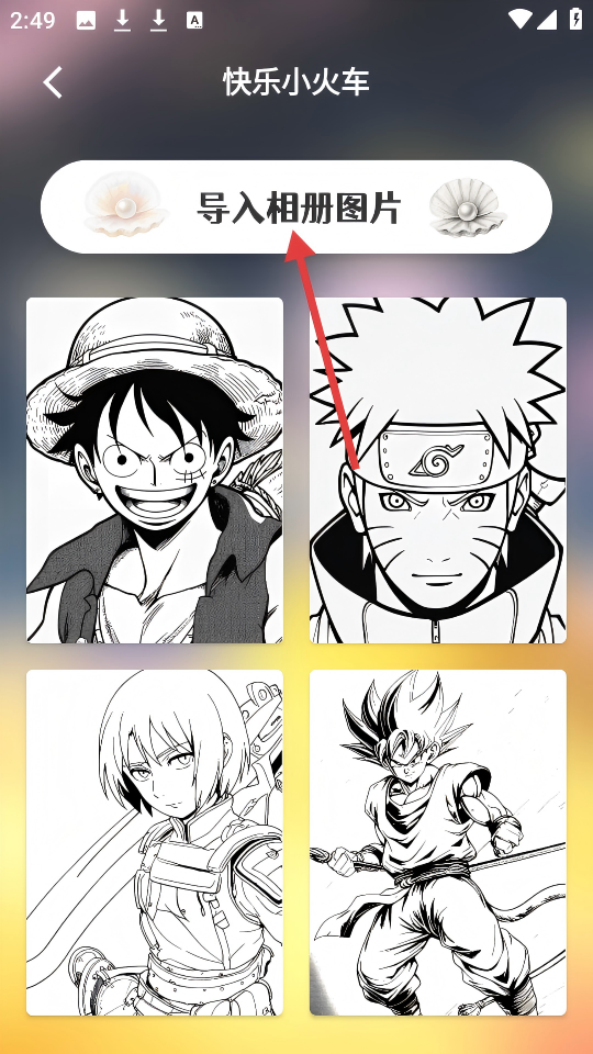 2、在快乐小火车页面,点击【导入相册图片】按钮,进入相册选择界面。