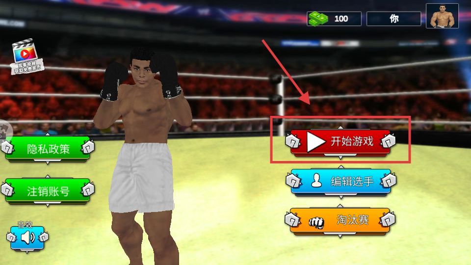 1、点击【开始游戏】按钮进入格斗,准备在擂台体验热血拳击对战,开启格斗之旅。