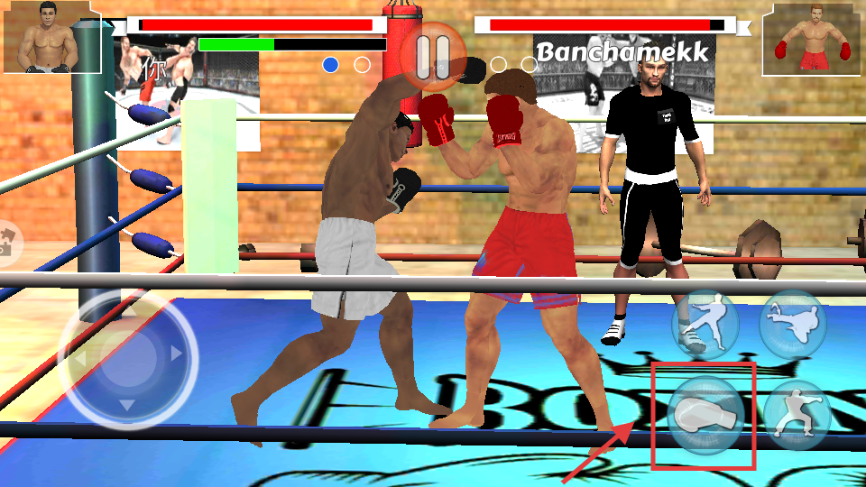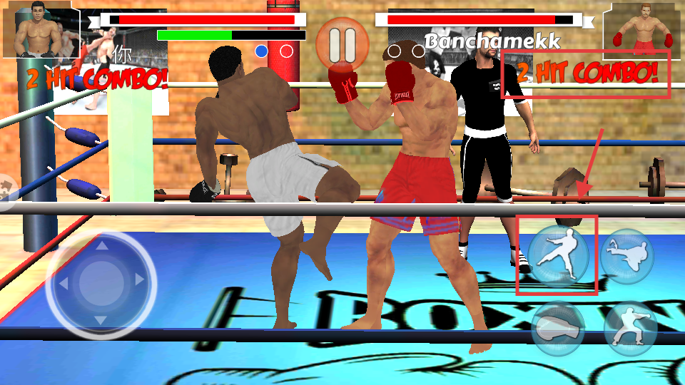 2、战斗时点击出拳图标【拳击】,配合移动键控制方向,精准发起拳击进攻压制对手。