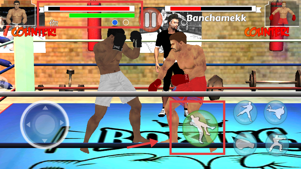 4、关注血条【你】的状态,血条充足时点击绿色技能图标,释放强力招式打击对手。