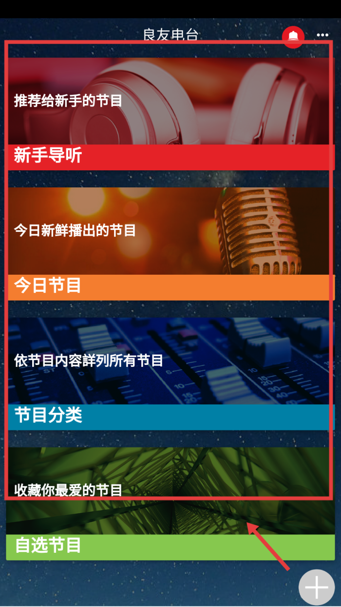 1、进入良友电台主界面,可查看【新手导听、今日节目】,按【节目分类】找内容。