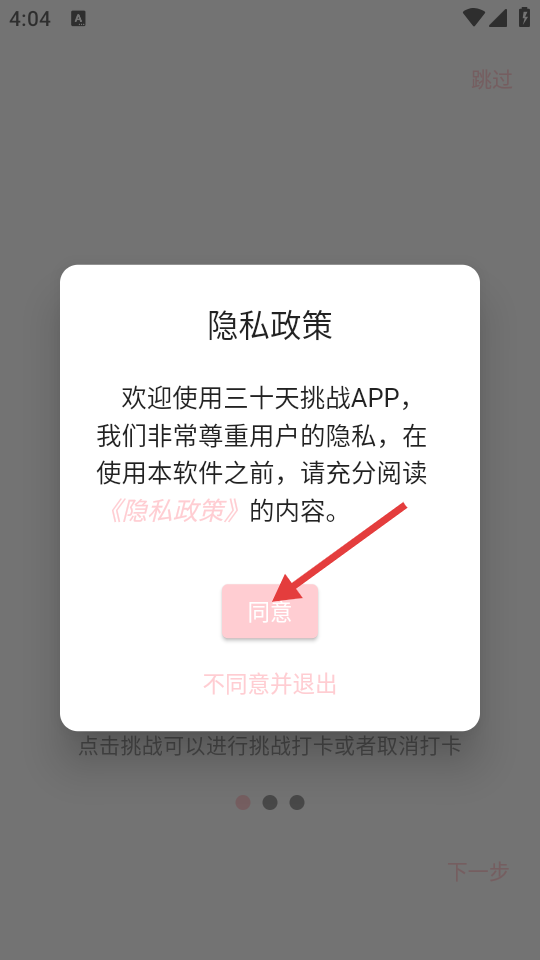 1、打开APP,在隐私政策弹窗中点击【同意】。
