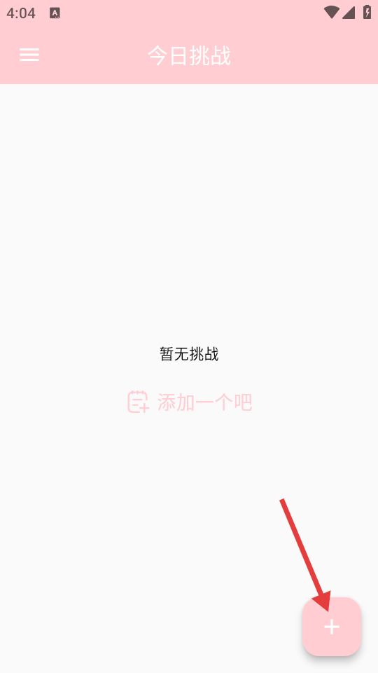2、进入“今日挑战”页面,若暂无挑战,点击右下角“+”号。