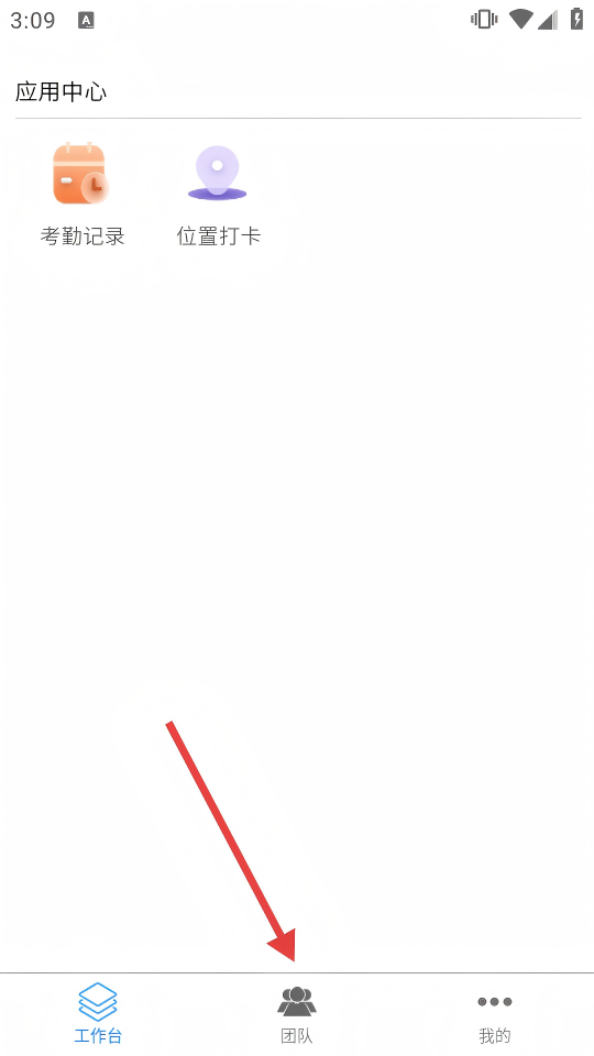 1、进入应用中心页面,点击底部【团队】,进入团队相关界面。