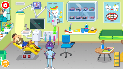 4、在牙科场景里,利用各类牙科器械,为患者进行牙齿检查与治疗,维护口腔健康。