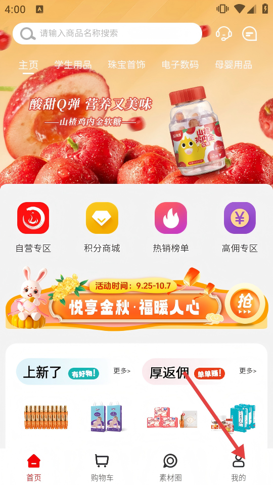 1、打开购物类APP首页,点击底部【我的】,进入个人页面。
