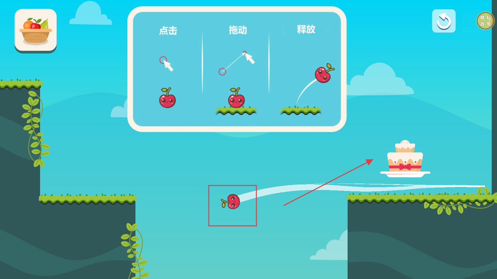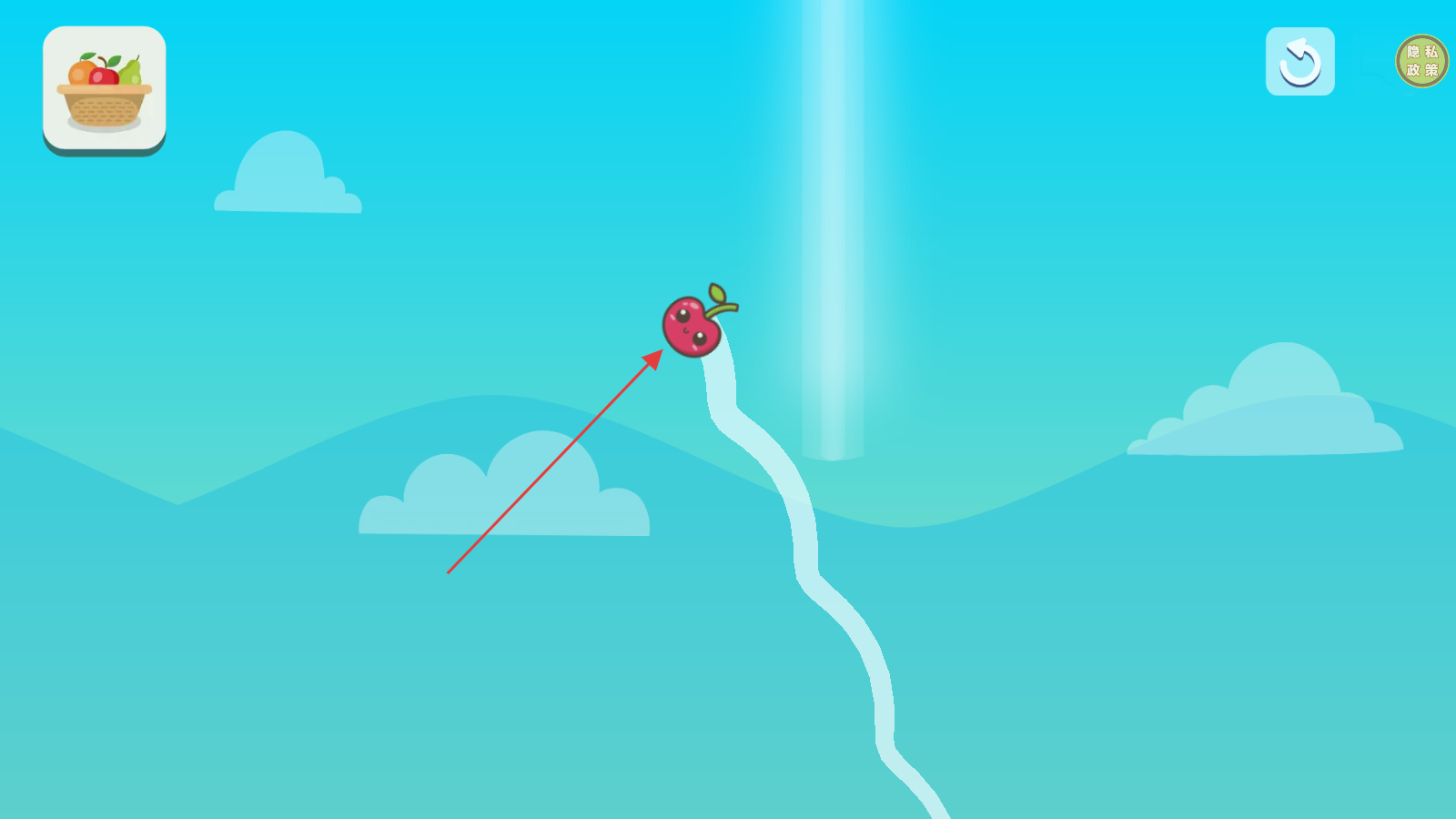 3、樱桃飞行过程中,会沿着轨迹移动,注意观察轨迹,确保樱桃能顺利靠近蛋糕。