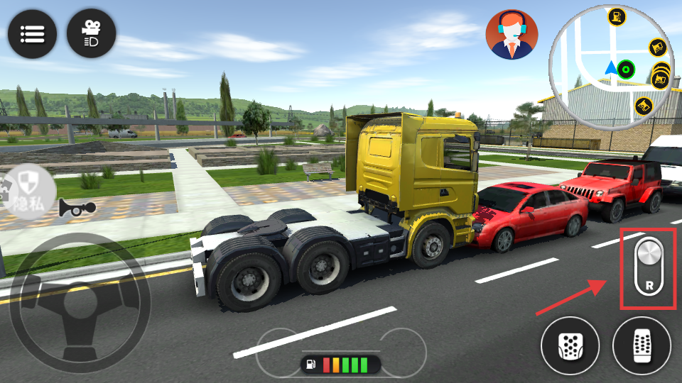 4、会车或需倒车时,点击右侧【R】按钮切倒车模式,谨慎操作防碰撞。