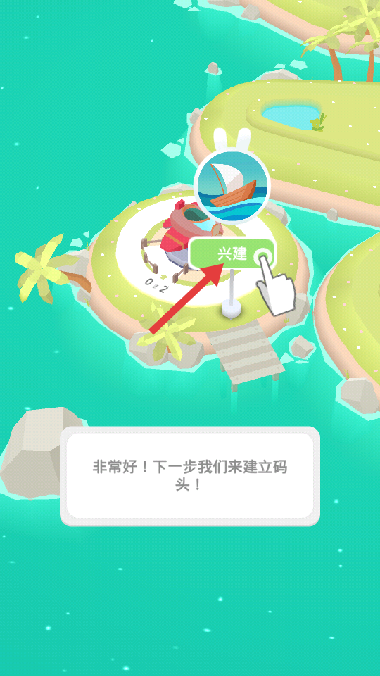 1、点击【兴建】,开始建立码头,推进乐园设施建设。