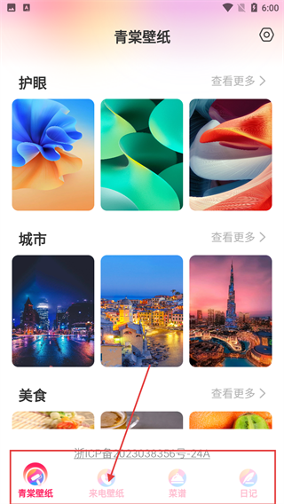 2、在软件主界面,点击底部的【来电壁纸】选项,进入来电壁纸选择页面。