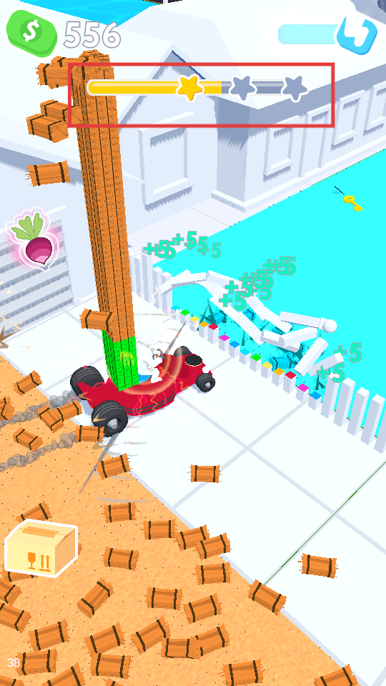 2、驾驶车辆加快割草速度,获取金币,同时提升星级进度。