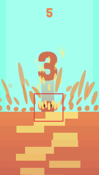1、仔细观察上方带表情的圆形和下方阶梯状结构的位置关系,找准时机,通过点击操作,让圆球下落。