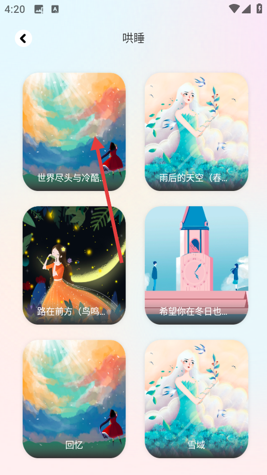3、进入哄睡页面,选择想要播放的音频,如“世界尽头与冷酷仙境”。