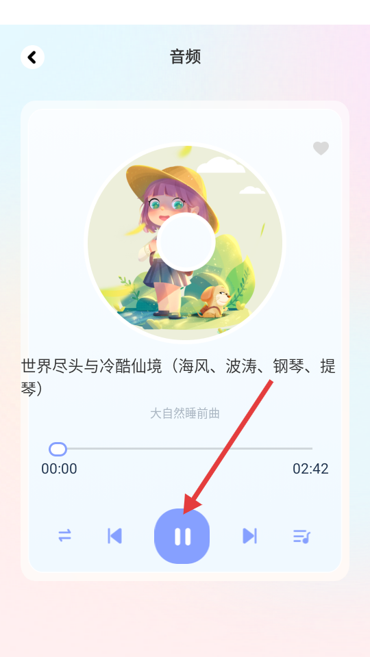 4、进入音频播放页面,点击播放按钮开始播放音频,可进行暂停、切换上一曲/下一曲等操作。