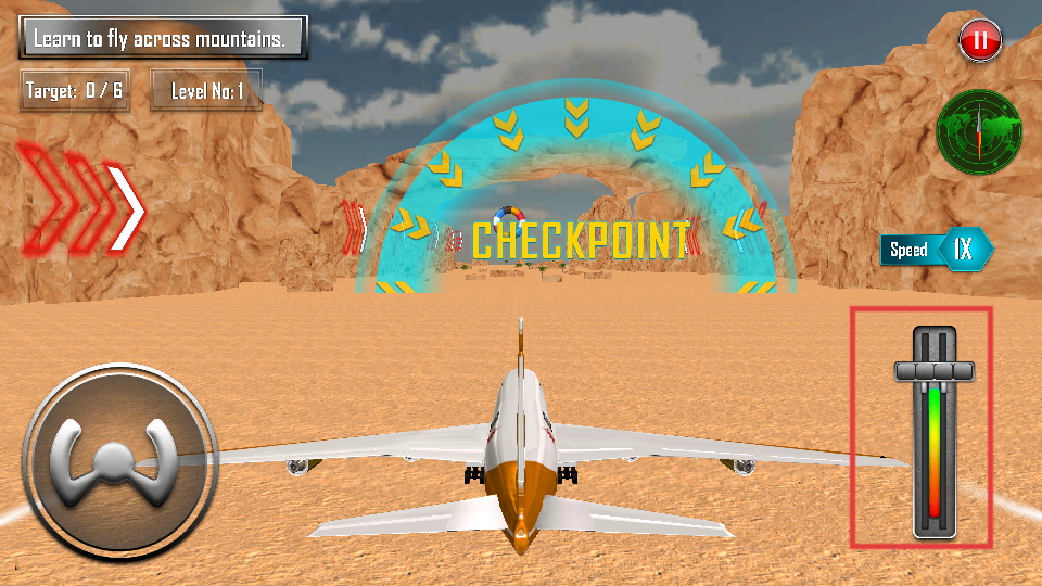 3、调节右侧装置控制飞机动力,驾驶飞机朝着【CHECKPOINT】方向飞行。